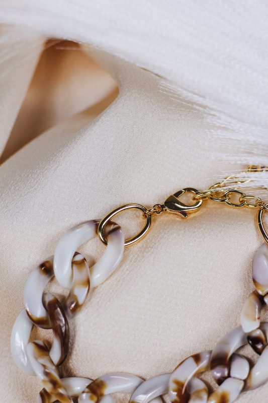 Ivory Brown Swirl Chunky Acrylic Chain Link Bracelet
