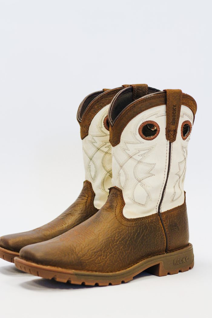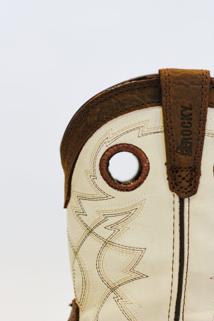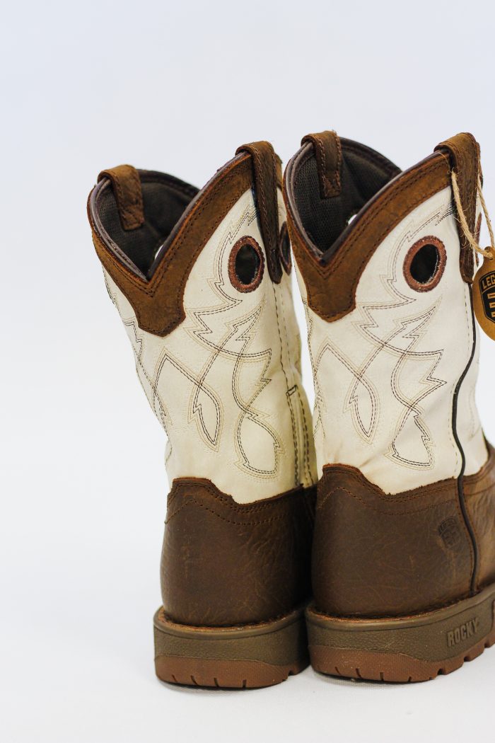 Big Kid’s Bone and Brown Boot by Rocky RKW0388CFull-Grain Leather Upper with Man-Made ShaftSquare ToeStitch Out ConstructionRemovable Cushion FootbedE