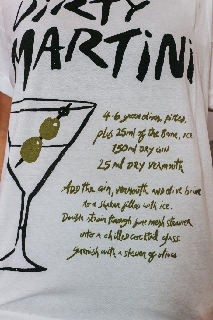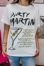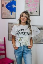 Spice up your wardrobe with our Dirty Martini White Graphic Tee. This playful tee features a unique design and a relaxed fit for ultimate comfort. Perfect for a night out or a casual day, this tee is sure to be a hit.