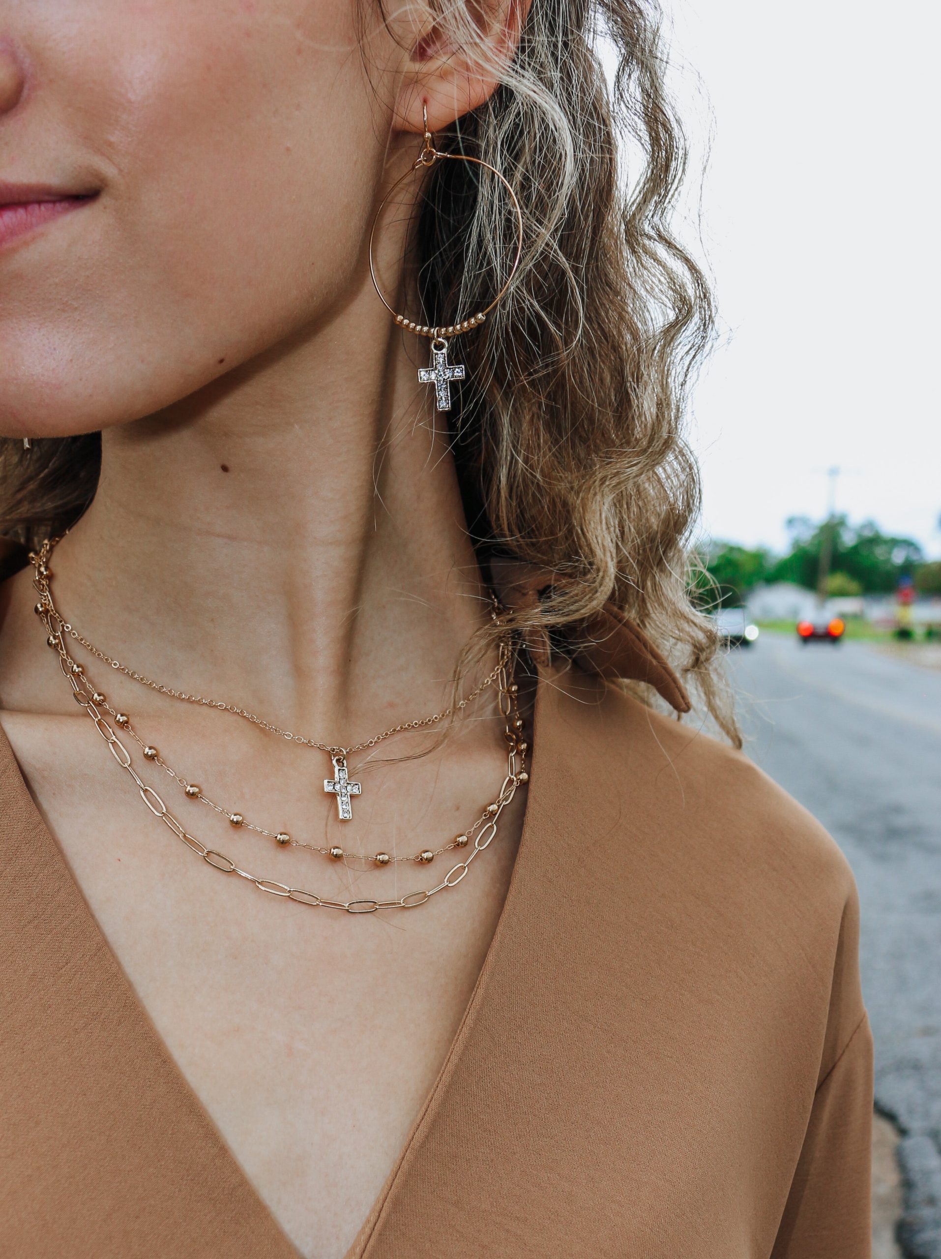 Be the first to review “Gold Beaded Hoop with Crystal Cross Earring” Cancel reply