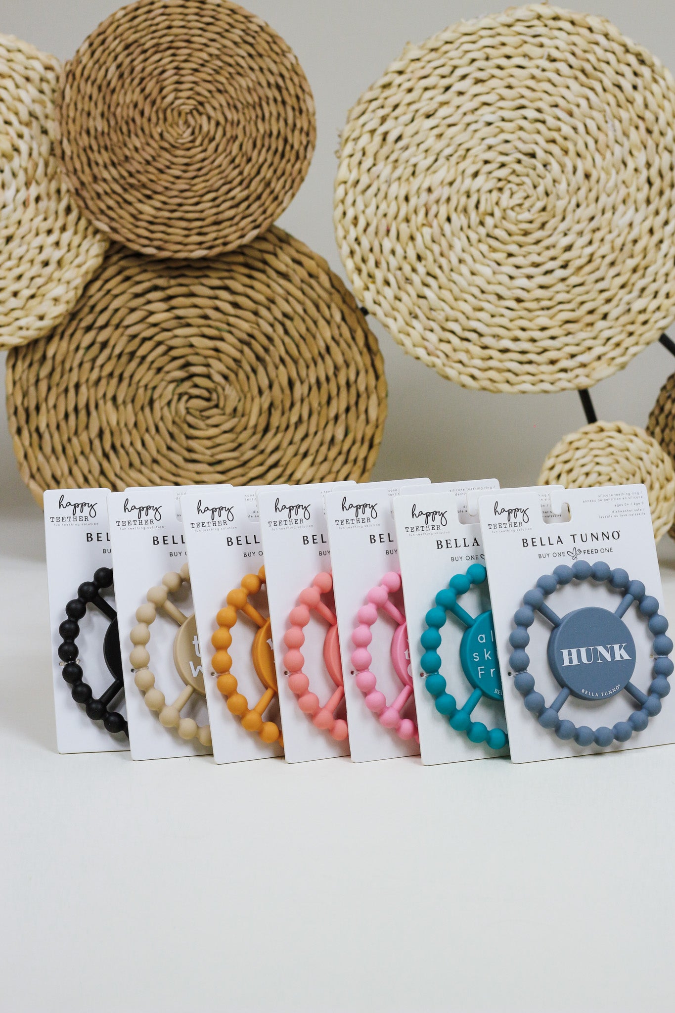 Our baby teething toy is a silicone teether that will soothe sore gums and provide sensory stimulation. The silicone beaded material provides an attractive texture for mouthing and teething. The Happy Teether is easy to grip from any angle and gives the right amount of resistance to provide pain relief for early teeth.