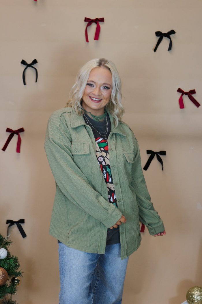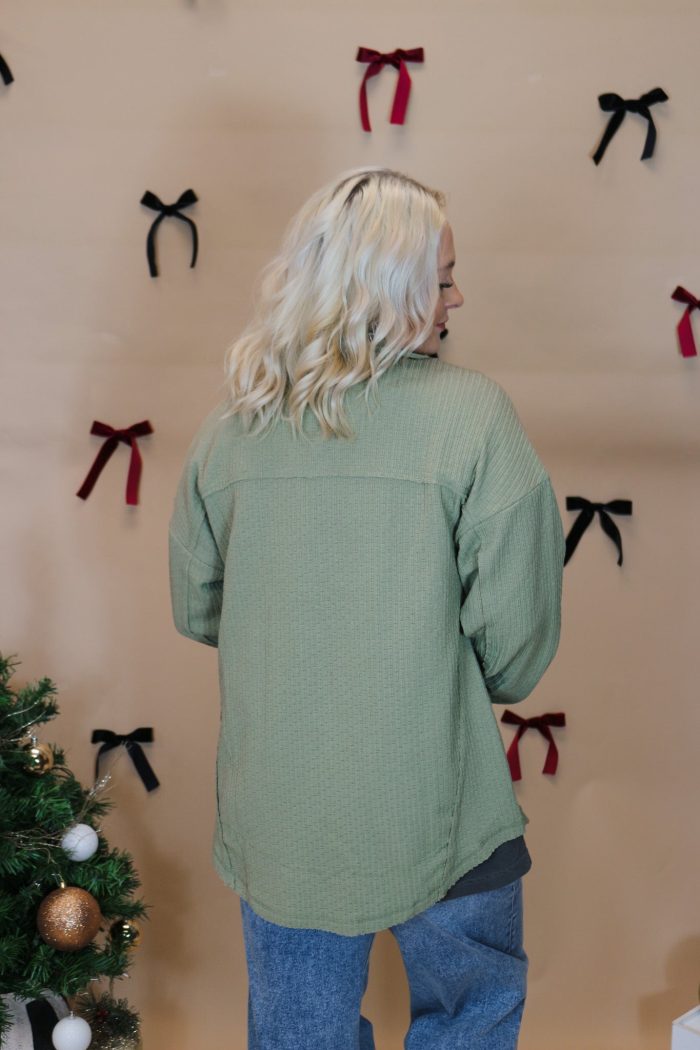 Introducing our Story Telling Textured Shacket, the perfect blend of light weight and style. Available in three quirky colors: blush, grey, and sage.