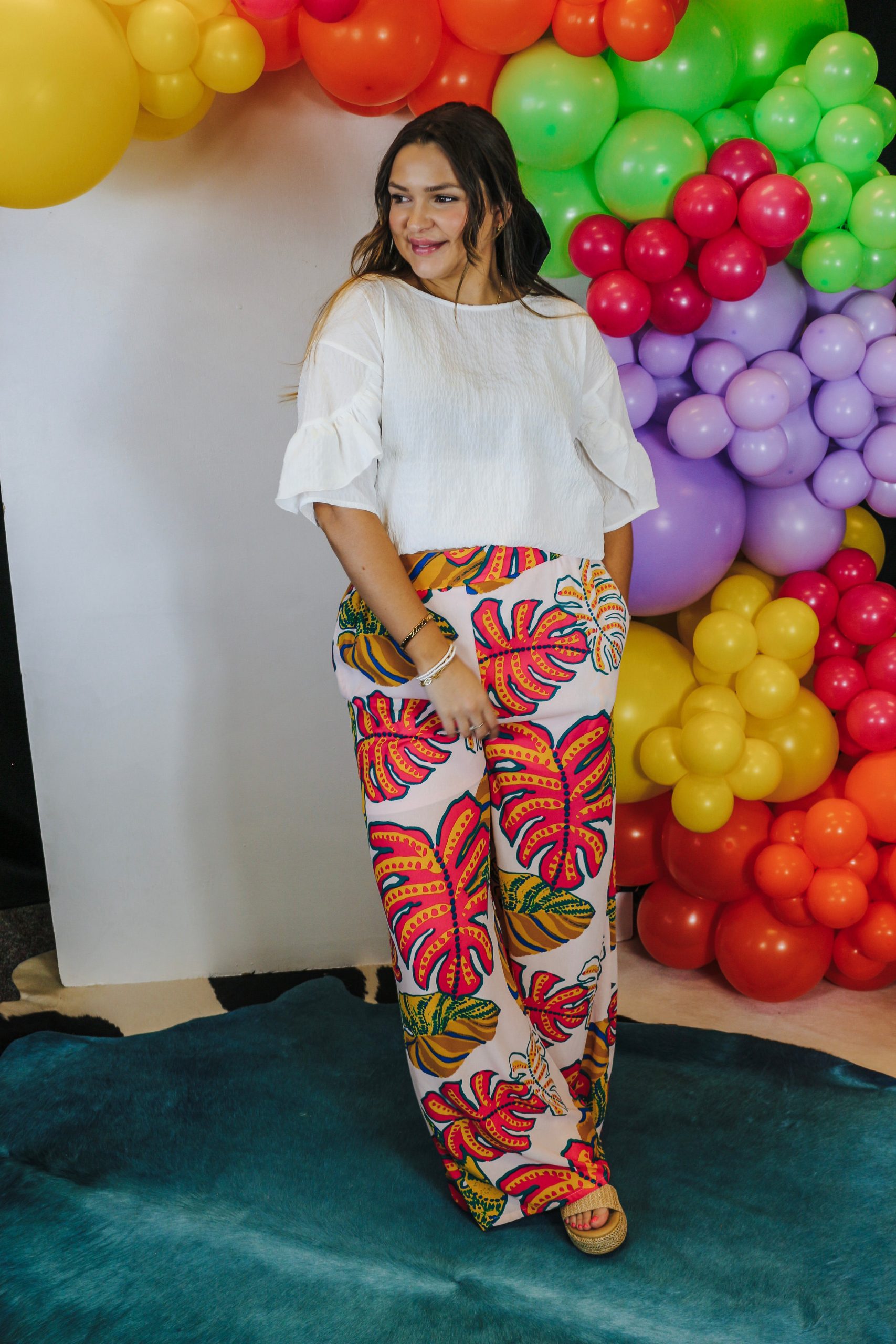 A basic top becomes a fun statement piece thanks to the added touch of an elbow length ruffle. Easy fit cut works for all figures. Pair this with a fa